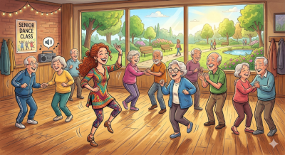 Stern Stunde Jeden zweiten Montag wird es schwungvoll, fröhlich und musikalisch – denn dann heißt es: Sitztanz! Unser Motto lautet: Wir beginnen mit einem beschwingten Warm-up: Stuhlyoga und flotte Musik wie Ski Twist oder andere Gute-Laune-Hits bringen unseren Kreislauf in Schwung. Danach wird es tänzerisch: Zu Schlagern, Popmusik und bekannten Hits tanzen wir im Sitzen Rumba, Polka, Letkiss, Cha-Cha-Cha, Tango, Twist, Walzer und sogar orientalische Bewegungen. Jeder macht mit, so wie er kann – und alle sind mit Begeisterung dabei. Besonders viel Freude bereiten uns unsere lustigen Choreographien. Wenn wir „Ohne Krimi geht die Mimi nicht ins Bett“, „Mein kleiner grüner Kaktus“, „Es wird Nacht, Señorita“ oder sogar einen schwungvollen Can-Can umsetzen, wird viel gelacht, geschunkelt und mitgesungen. Zum Abschluss gönnen wir uns eine wohlverdiente Ruhephase. Mit Progressiver Muskelentspannung und sanfter Chill-Musik lassen wir die Stunde entspannt ausklingen. Sitztanz ist mehr als Bewegung – es ist Gemeinschaft, Lebensfreude und ein Stück Lebensqualität. Und ich freuen mich schon auf den nächsten Montag mit meinen Senioren!